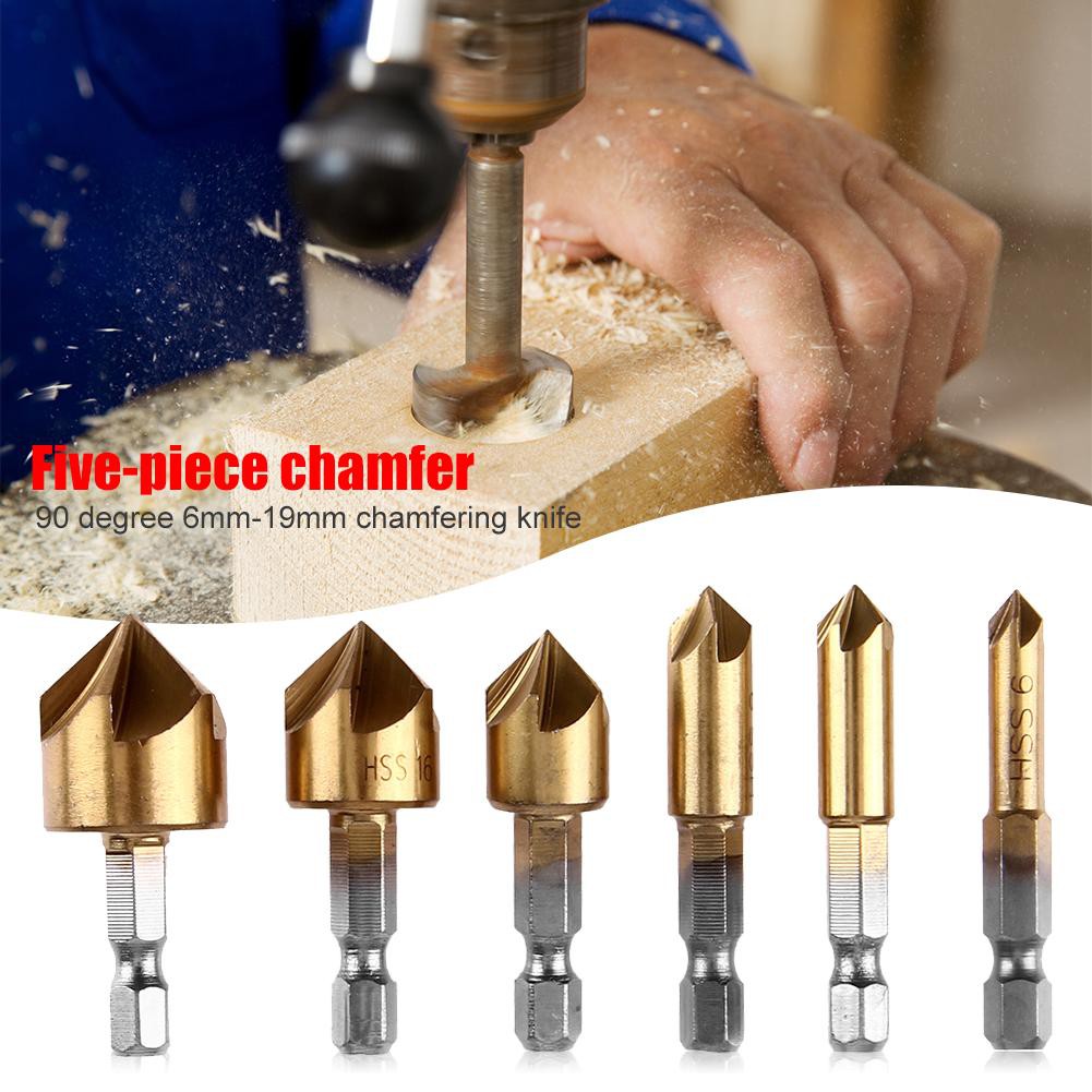 6pcs Counter Sink Chamfering Hand Tools Hex Shank Woodworking 90 Degree Drill Bit Set Shopee Indonesia